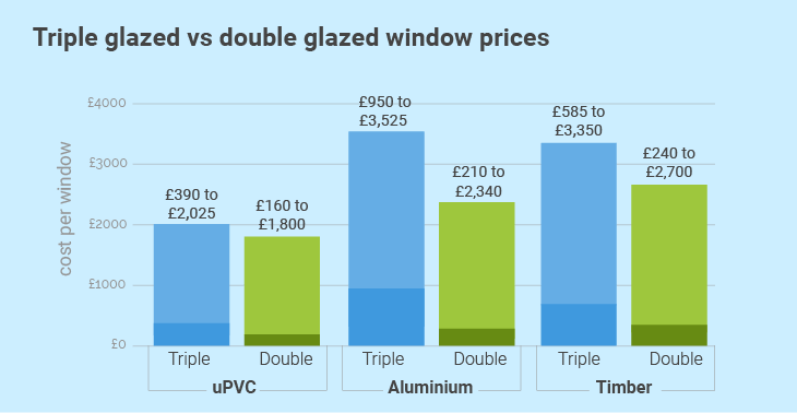 On average, the cost of triple glazing can range from 20% to 50% more than double glazing, with the higher end of the range typically seen in larger or more complex window installations.